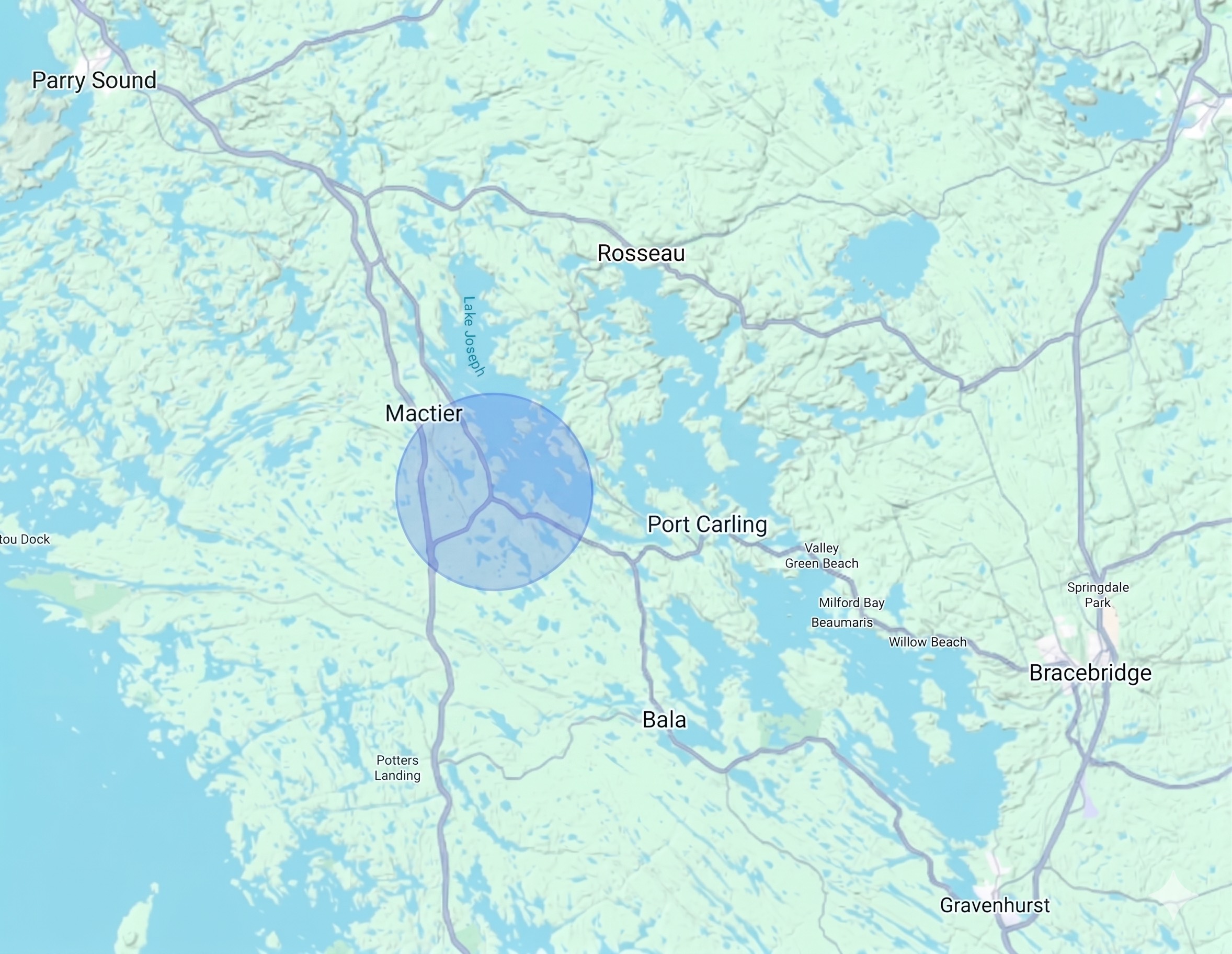Roughly 2 hours north of Toronto
